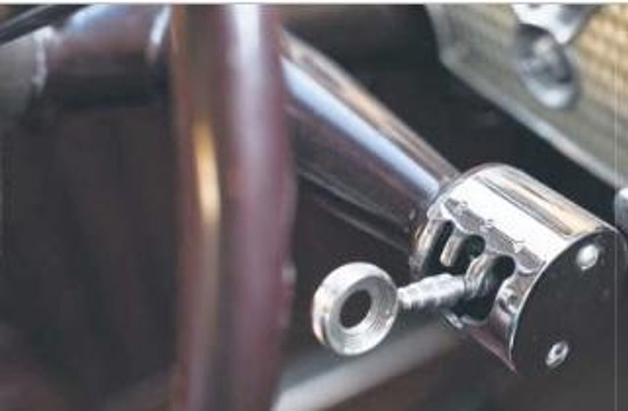 To egzemplarz z 1937 r., a renowację przeszedł w 1962 r. Jak widać, nadal imponuje formą. Dźwignia zmiany biegów jest inna niż te, do których przywykliśmy współcześnie.