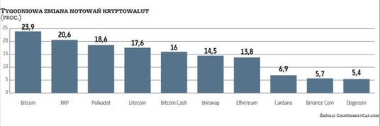 Oprócz tego doszło także do tzw. short squeeze'u, czyli wyrzucenia z rynku pozycji na spadek ceny bitcoina i bardzo szybkim odkupywaniu tej kryptowaluty, co wspierało wzrost jej kursu.
