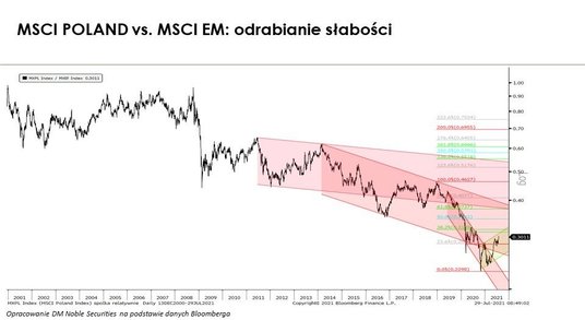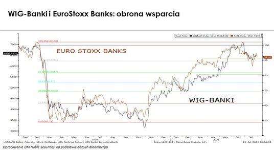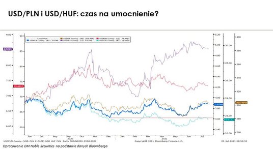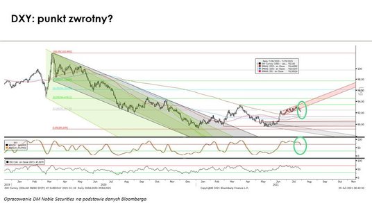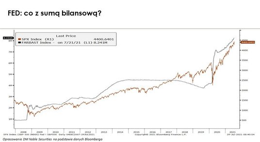 Rynek spodziewał się utrzymania stóp, więc można powiedzieć, że nic się nie wydarzyło. Jednak z drugiej strony rynek oczekiwał jednak informacji dotyczących planu wycofywania się ze skupu aktywów, ale tego zabrakło. Wykres przedstawiający sumę bilansową Fed i indeks S&P 500 wyraźnie pokazuje, że notowania rynku akcji rosną wraz ze wzrostem sumy bilansowej. Inwestorzy mogą się obawiać, że jeśli tempo wycofywania się ze skupu aktywów przez Fed będzie zbyt szybkie, to wpłynie to negatywnie na indeksy giełdowe. Brak planu dotyczący normalizacji polityki pieniężnej został przyjęty negatywnie, może więcej dowiemy się w Jackson Hole podczas spotkania szefów banków centralnych, które odbędzie się 26-28 sierpnia.