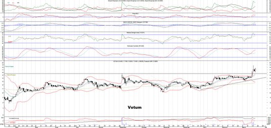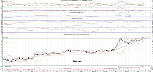 Faktycznie cena utworzyła formacją podobną do spodka czy też muszli – jak ujmuje to w swoich książkach Bulkowski. Cena osiągnęła ATH i jeśli to zapowiedź zwyżek, to spodziewam się ruchu o 20/30 proc. i dopiero kolejnej korekty, być może w formie trendu bocznego, jak w przeszłości. Wskaźniki wyglądają zachęcająco. Zwracam uwagę na MACD, który zakręcił w górę nad linią 0. Linie +DI i –DI też pokazały kupno. To co mnie martwi, to mały wolumen obrotu na czwartkowej, białej świecy. Niemniej można to skompensować przez wzrost wskaźnika Akumulacja/Dystrybucja. Oscylatory mają jeszcze potencjał wzrostowy, trend główny jest zwyżkowy, więc perspektywy krótkoterminowe są dobre.
