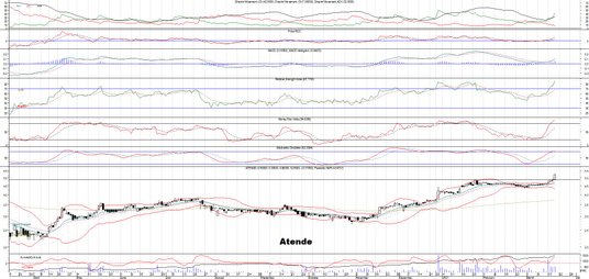 Pierwsza proponowana przez pana spółka to przedstawiciel branży IT – Atende. Na wykresie widać trend wzrostowy, a ostatnio coś w rodzaju formacji spodka na wysokich poziomach i wyjście na historyczne maksima. Gdzie jest sufit?