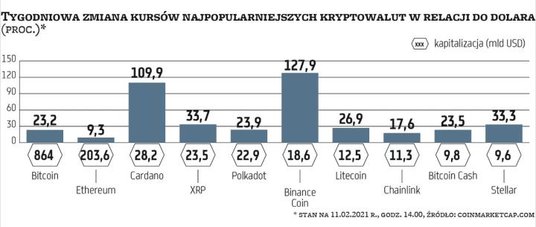 Dodajmy, że doge – podobnie jak bitcoin – oparty jest na konsensusie Proof of Work, co oznacza, że do jego kreacji potrzebny jest proces miningu. W przeciwieństwie jednak do bitcoina jego podaż jest nieograniczona, co oznacza, że ma on charakter inflacyjny. Pisząc, że powstał dla żartu, mam na myśli fakt, że celem jego powstania było rozluźnienie napiętej w 2013 r. atmosfery w branży. Stąd popularny Pieseł w jego logotypie. Co jednak istotne, kryptomem, bo tak chyba można nazwać ten cyfrowy twór, przetrwał do dziś. Głównie dlatego, że użytkownicy takich forów jak Reddit zaczęli go używać do płacenia napiwków, prywatnych transakcji w sieci, a także do zbiórek. A propos tych ostatnich – w 2014 r. reprezentacja Jamajki w bobsleju zebrała w ten sposób ponad 30 tys. USD, by móc pojechać na zimowe igrzyska do Soczi. Poza tym dogecoin ma po prostu rzeszę wiernych fanów, w tym m.in. najbogatszego człowieka świata. Za sprawą Elona Muska doge zyskał teraz kolejne życie. Jest o nim głośno, a kurs rośnie jak na drożdżach. W pewnym momencie jego kapitalizacja była tak duża, że dotarł do siódmego miejsca w rankingu kryptowalut, wyprzedzając takie aktywa, jak chainlink, stellar czy litecoin. Postanowiłem go więc kupić.