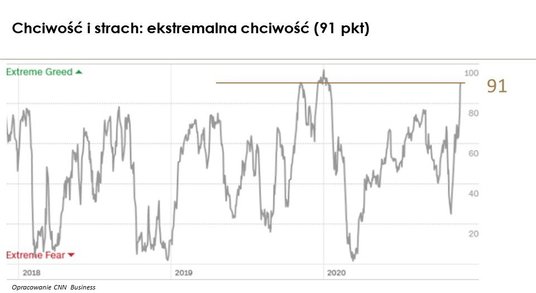W tę krótkoterminową perspektywę korekty wpisuje się zachowanie indeksu strachu i chciwości.