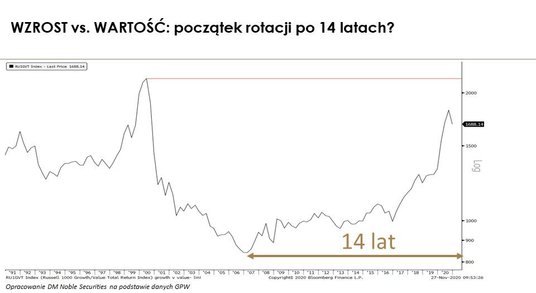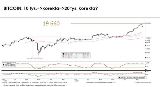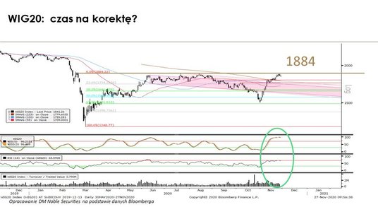 Rekord tego indeksu to moim zdaniem efekt game changera w postaci informacji o szczepionce na koronawirusa. Coraz więcej firm raportuje postęp badań, co zmienia postrzeganie spółek przemysłowych. Zwłaszcza, że indeksy PMI z wielu krajów potwierdziły ostatnio, że ten segment gospodarki radzi sobie dobrze. Oczywiście w krótkim terminie widać już wykupienie, co sugeruje, że dużo pozytywnych informacji jest już w cenach. Dlatego najbliższy czas może przynieść korektę, ale w szerszym ujęciu pozostaję optymistą.