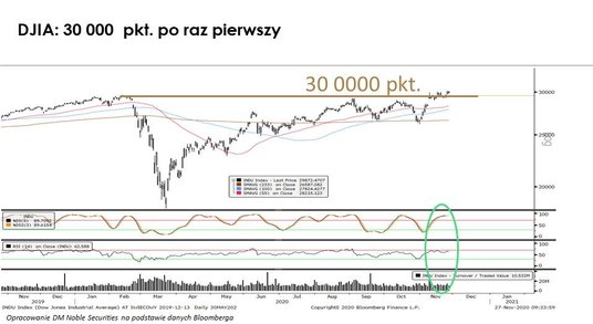 Listopad jest bardzo udany dla rynków akcji, czego swego rodzaju zwieńczeniem był historyczny rekord Dow Jones Industrial Average, powyżej 30 000 pkt. Czy to jest szczyt możliwości Wall Street, czy zobaczymy nowe rekordy?