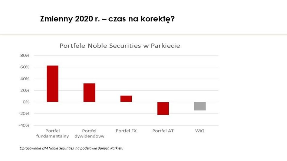 W tej chwili na fundamentalnym jesteśmy +60 proc., a na technicznym -20 proc. To pokazuje, że warto dywersyfikować swoje pozycje. Bo o ile w fundamentalnym portfelu wybieramy co miesiąc kilka podmiotów, to w technicznym tylko jeden. Ogólny bilans tych portfeli jest w tym roku bardzo dobry i myślę, że w kolejnych latach może być ciężko go powtórzyć. Warunki rynkowe sprzyjają temu, by podejmować ryzyko i być elastycznym. Myślę, że w kolejnych miesiącach takie warunki się utrzymają, więc nie jeden osiągnie jeszcze ponadprzeciętne wyniki.