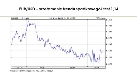 Patrząc techniczne wydaje mi się, że dwuletni trend aprecjacji dolara został już przełamany i są szansę, że euro utrzyma siłę na dłużej. Przemawia za tym kilka czynników. Mam na myśli m. in. bezprecedensowy wzrost sumy bilansowej Fedu, fatalne statystyki dotyczące koronawirusa w USA, czy coraz lepsze dane makro ze strefy euro. Co istotne – scenariusz słabego dolara mógłby istotnie wpłynąć na rynki wschodzące, wspierając scenariusz cyklicznej zmiany, o którym mówiłem na początku. Dlatego zachowanie EUR/USD mogłoby być takim dekadowym game changerem.