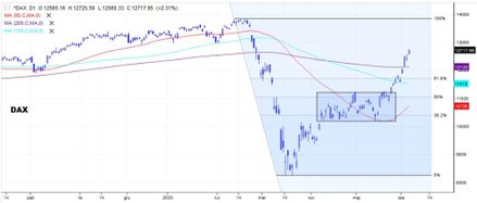 Rynki europejskie zachowywały się podczas tego kryzysu relatywnie słabiej, co wiąże się z tym, że u nas udział tych spółek technologicznych jest mniejszy niż w USA. Ta ostatnia zwyżka na DAXie może więc być efektem tej rotacji sektorowej. Ponadto optymizm podkręca wsparcie finansowe ze strony Komisji Europejskiej.