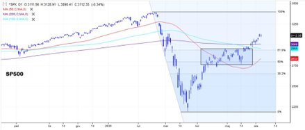To jest trudne pytanie, bo podejmujemy się już prognozowania. Nie wiem dokąd S&P500 jest w stanie zawędrować, bo pomimo siły tradycyjnych sektorów, wciąż nie wiemy, jakie dane będą napływać z gospodarki i "frontu wirusowego". Obserwowany ostatni hurraoptymizm na rynkach rodzi we mnie jednak obawę, że jeszcze w czerwcu zobaczymy przystanek w tych wzrostach lub korektę.
