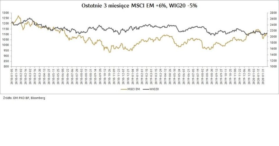 Przejdźmy już do polskiego rynku akcji. Porównujesz WIG20 do MSCI EM i wciąż wypadamy na tym tle słabo.