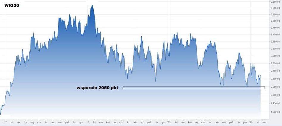 WIG20 dotarł ostatnio do strefy wsparcia przy 2050 pkt i na razie udało mu się odbić. Może to sprowokuje odreagowanie? Zwłaszcza, że widać przebłyski siły w branżach energetycznej i paliwowej...