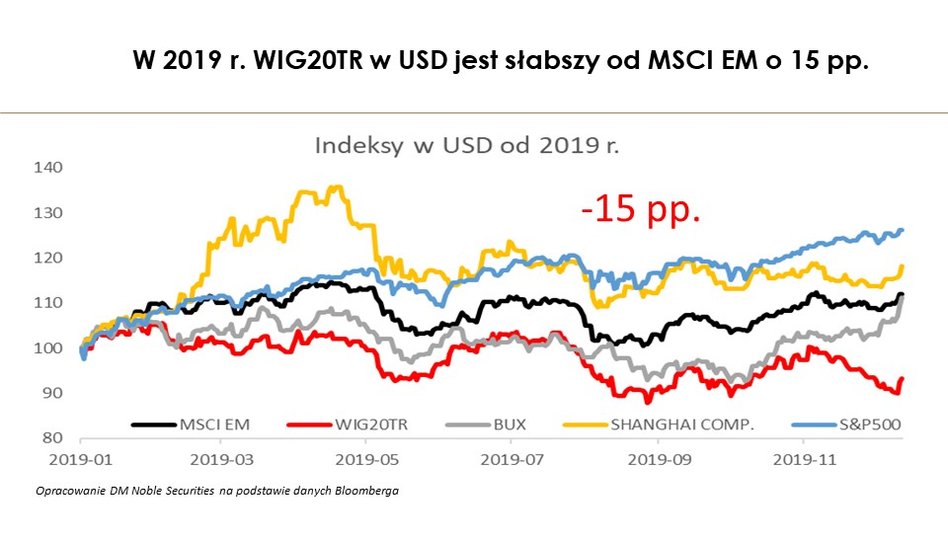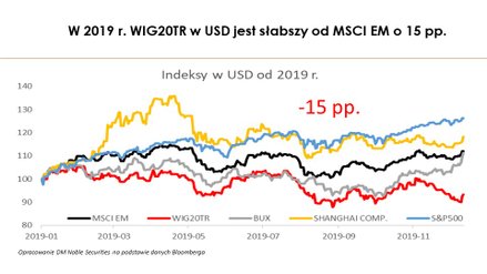 Lokalny charakter naszej słabości pokazuje też trzecia liczba, a więc 15 pkt proc. Tyle dzieli WIG20 od MSCI EM. Mamy więc sporo do nadrobienia...