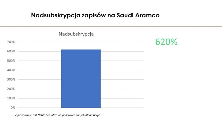 A więc „nie ma tego złego...". Czy podobnie można interpretować debiut Aramco? Z jednej strony pogorszy się nasza pozycja w koszyku MSCI EM, ale z drugiej – na co wskazuje piąta liczba, czyli 620 proc. nadsubskrypcji na akcje naftowego giganta -  na rynku globalnym jest spory zapas gotówki, która szuka swojego miejsca. Znajdzie go na GPW?