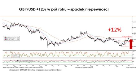 Funt zyskał w pół roku 12 proc. W czwartek zareagował wyraźną aprecjacją względem dolara. To pokazuje, że inwestorzy czekali na ten scenariusz i chyba faktycznie deklaracja dotycząca brexitu zmniejsza rynkową niepewność, która nam towarzyszyła od dłuższego czasu. Ta epopeja dobiega końca, a inwestorzy wiedzą na czym stoją i mogą to uwzględniać w swoich modelach wyceny. W tym kontekście perspektywy na 2020 r. są dobre. Do tego mamy kolejny, optymistyczny tweet prezydenta USA. To wszystko zbiega się z osłabieniem dolara. Indeks DXY odbił się od sufitu na poziomie 100 pkt. Jeśli ta tendencja się utrzyma, to faktycznie mamy kolejny istotny argument za zwyżkami cen akcji na rynkach wschodzących.