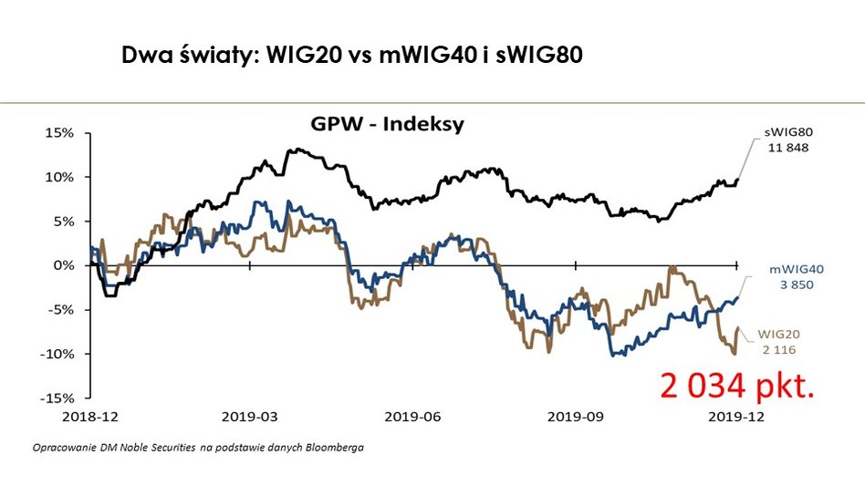 Faktycznie WIG20 pozostaje pod dużym wpływem czynników lokalnych, w tym czynników politycznych. Jesteśmy świeżo po wyborach, pojawiają się nowe pomysły polityków i jak widać inwestorzy oceniają je negatywnie. Nikt chyba nie spodziewał się planów budowy koncernów multienergetycznych. Do tego dochodzi też słabość banków powodowana wyrokami TSUE i obawy o faktyczną partycypację pracowników w PPK. Zastanawiam się jednak, jak odebrane byłyby informacje typu: budowa elektrowni w Ostrołęce nie w technologii węglowej tylko gazowej, albo regulacje wspierające banki w radzeniu sobie ze skutkami wyroków TSUE. Myślę, że takie rozwiązania wspierałyby segment blue chips. Na razie trwa szukanie dna i może to potrwać dopóty, dopóki nie poznamy kompletnych strategii politycznych.