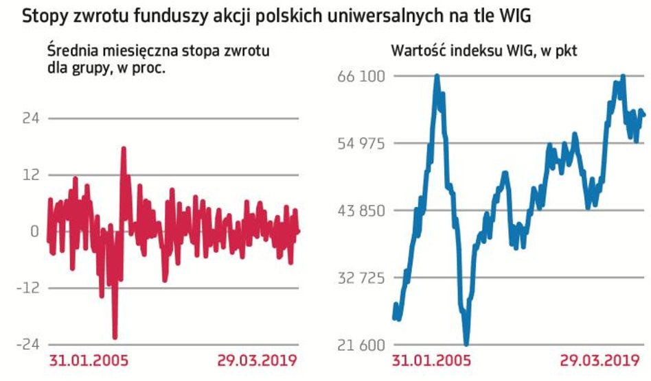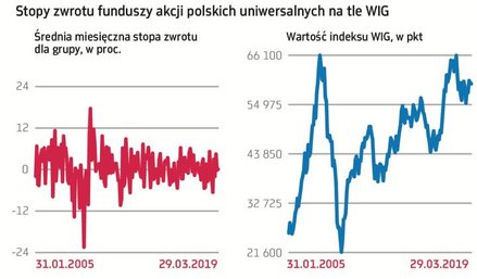 Jednak nie zawsze tak było. W latach 2006–2008 z funduszy dłużnych klienci podjęli ponad 8 mld zł. W tym czasie największą popularnością cieszyły się fundusze akcyjne, co było skutkiem trwającej na giełdzie hossy. Od września 2005 r. do października 2007 r. do funduszy akcyjnych napłynęło aż 35 mld zł. Główny indeks warszawskiego parkietu urósł w tym czasie prawie o 100 proc., a WIG20 o ponad 70 proc. Jak wynika z danych Analiz Online, w tym czasie średnia stopa zwrotu z funduszy akcji polskich uniwersalnych wyniosła 99 proc., a funduszy akcji polskich małych i średnich spółek 170 proc.