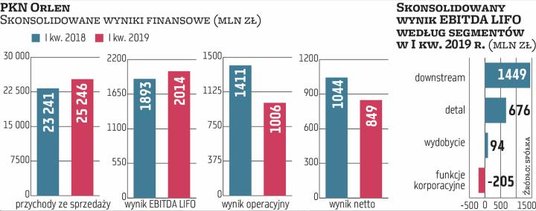 To już jednak historia. Niedawno firma opublikowała wyniki za I kwartał. Rok do roku grupa zanotowała wzrost przychodów o 8,6 proc., do ponad 25,2 mld zł. Był to przede wszystkim efekt zwyżki wolumenów sprzedaży i poprawy notowań produktów rafineryjnych wyrażonych w złotych. Koncern odnotował też 6,4-proc. poprawę zysku EBITDA LIFO. Przekroczył on poziom 2 mld zł, do czego przyczyniły się z kolei wyższe marże w detalu. Pozytywny wpływ miały tu również spadki ceny ropy. Dobre wyniki to również rezultat wdrożenia efektywnych procesów zarządczych i operacyjnych, a także racjonalizacji ponoszonych wydatków.