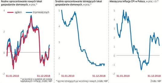 Realne straty z lokat zdarzały się już w przeszłości. Na przykład na początku 2010 r. nominalne średnie oprocentowanie nowych lokat dla klientów indywidualnych sięgało 4 proc., jednak podatek oraz wysoka inflacja, sięgająca 3,5 proc., powodowały, że realna stawka była lekko poniżej zera. Teraz się zdarza, że banki oferują około 3 proc., a nawet więcej, ale zwykle są to propozycje wyłącznie dla tych, którzy przynoszą do banku nowe środki, lokują kwotę w wysokości limitowanej przez bank, spełniają dodatkowe warunki; czasami trzeba np. założyć konto w banku albo wykonać odpowiednią ilość transakcji kartą.