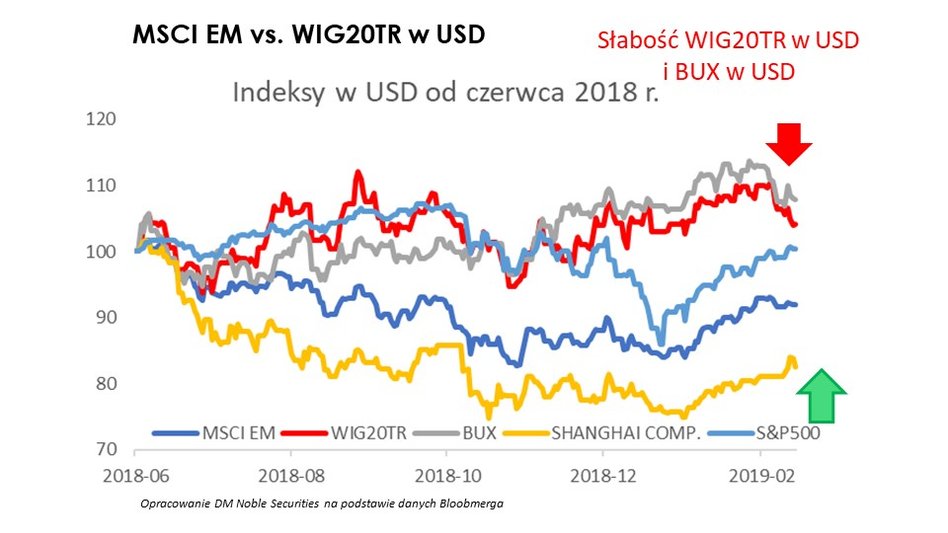 Wolę zerkać na WIG20 w dolarze, z uwagi na fakt, że jednak większość obrotów w tym segmencie robią inwestorzy zagraniczni. Wydaje mi się, że nasz indeks był w ubiegłym miesiącu zaskakująco silny wobec MSCI EM i teraz obserwujemy powrót do średniej.