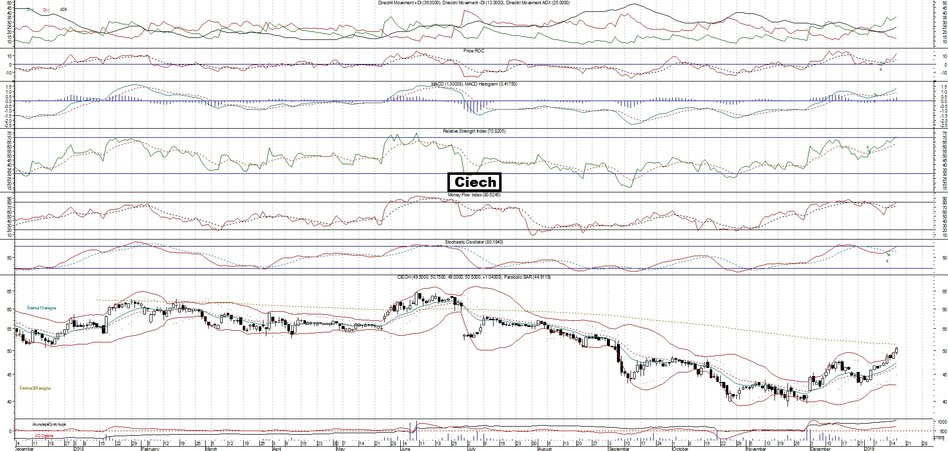 Faktycznie, jeszcze trzy/cztery miesiące temu tych spółek, które mi się technicznie podobają, było może 15-20, a dziś przed programem miałem problem, na którą dziesiątkę się zdecydować. Ta obfitość jest dla mnie swego rodzaju wskaźnikiem, pokazującym, że sytuacja na rynku ulega poprawie. Notowania indeksów powoli wspinają się na wyższe poziomu. W segmencie blue chips coraz więcej spółek jest w trendach wzrostowych. Z kolei część mniejszych spółek zaczyna się wybijać i budować fale wzrostowe. Zwrócę tutaj uwagę, że mWIG40 bywa ostatnio silniejszy niż WIG20. To sugeruje, że mamy próbę szukania liderów wśród tej drugiej linii. Sytuacje jest więc coraz lepsza.