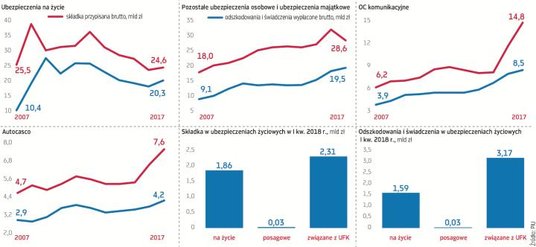Polacy najczęściej kupują ubezpieczenia komunikacyjne. W 2017 r. polisy te (obowiązkowe OC i dobrowolne autocasco) przyniosły około 36 proc. łącznej przypisanej składki brutto krajowych ubezpieczycieli – wynika z danych Komisji Nadzoru Finansowego. W państwach Europy Zachodniej więcej składki zbiera się z innych ubezpieczeń. Jak tłumaczy Andrzej Prajsnar, ekspert porównywarki Ubea.pl, to efekt tego, że w Europie Zachodniej rynek ubezpieczeń na życie i polis medycznych jest znacznie bardziej rozbudowany niż w naszym kraju.