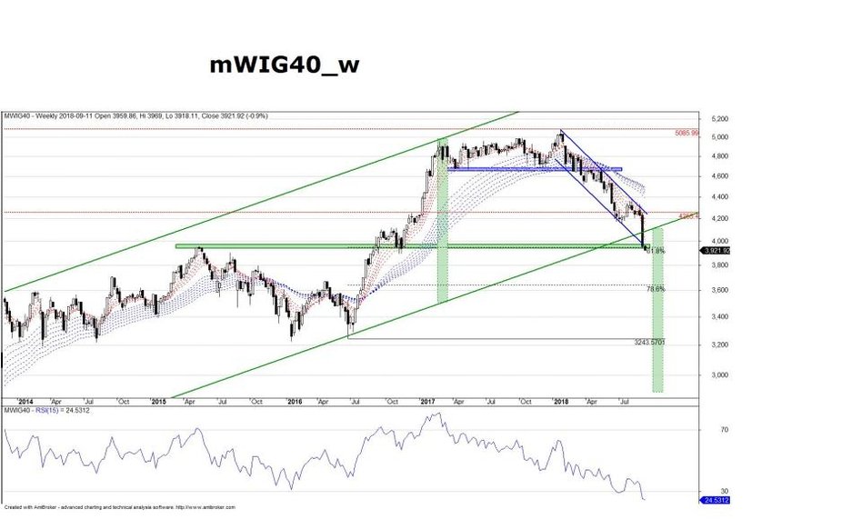 Piotr Neidek: Okres wakacyjny napawał optymizmem. WIG próbował nawet sforsować psychologiczną granicę 60 000 pkt. Niestety przełom sierpnia i września przyniósł cofnięcie, spadek pod dzienną dwusetkę, przełamanie lokalnego minimum i odejście od strefy oporu wyznaczonej przez wachlarz średnich ekspotencjalnych. Z punktu widzenia AT jest to sygnał kończący wakacyjną korektę wzrostową, który dopełnia ostatnia czarna, tygodniowa świeca. Znów sprawdziła się teoria magnetyczności luk, bowiem ostatnie okienko ponownie ściągnęło do siebie notowania.