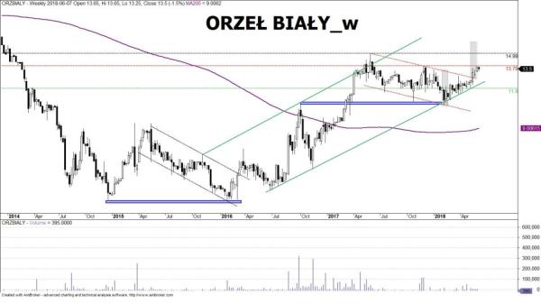 Korzystny rozkład wolumenu, wyjście kursu na tegoroczne maksim i dobre zachowanie wskaźników impetu to pozytywne argumenty techniczne, przemawiające za wyjściem kursu na nowe maksima. Kluczowe wsparcie w cenach zamknięcia to 11,8 zł.