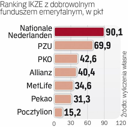 Najwięcej punktów w rankingu zdobył Nationale-Nederlanden, na drugim miejscu znalazł się PZU, a na trzecim PKO.