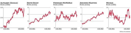 Największym powodzeniem wśród OFE cieszą się akcje internetowego giganta Alphabet, właściciela Google, w które zainwestowało pięć funduszy. Posiadane przez nie pakiety łącznie warte były na koniec ub.r. 462 mln zł. O ile nie sposób dokładnie określić, kiedy zainwestowały w akcje technologicznego giganta, o tyle pewne jest, że w okresie ostatnich 12 miesięcy ich wartość wzrosła prawie o 40 proc. Przed kilkoma dniami spółka pochwaliła się wynikami za IV kwartał, które okazały się wyraźnie lepsze od prognoz. To daje szansę na podtrzymanie trendu wzrostowego.