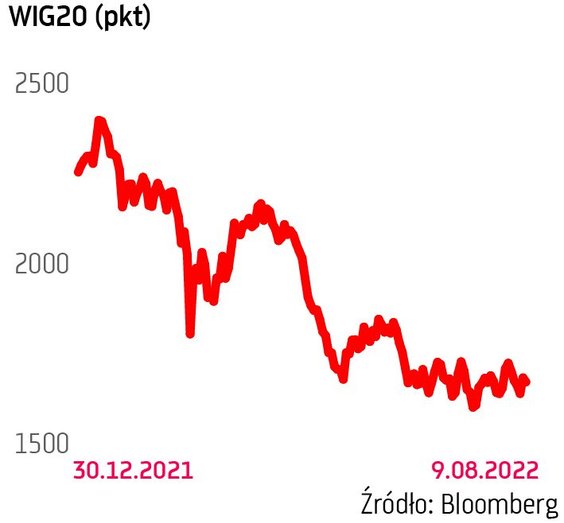 W tym roku, kiedy sytuacja na światowych rynkach się skomplikowała, nasza giełda jeszcze bardziej razi słabością. Amerykański wskaźnik S&P 500 w ciągu siedmiu miesięcy stracił ok. 15 proc., a WIG20 spadł w tym czasie o ok. 25 proc. W lipcu, kiedy na Wall Street mieliśmy odbicie o ok. 9 proc., na warszawskiej giełdzie wzrost nie przekroczył 2 proc.