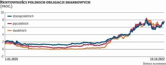 W ocenie Jarosława Leśniczaka, zarządzającego TFI PZU, na polskich obligacjach skarbowych mamy wystromienie krzywej rentowności. – Rentowności na krótkim końcu są stabilne, natomiast na długim końcu (pięcioletnie i dziesięcioletnie) rzeczywiście rosną – dodaje. Zdaniem Leśniczaka rynek spodziewa się, że RPP jest blisko końca cyklu podwyżek, ale wycenia jeszcze jedną bądź dwie podwyżki po 25 pkt baz. Jednocześnie inwestorzy widzą dużo ryzyk oraz że sytuacja gospodarcza i rynkowa może zmusić do dalszych podwyżek stóp, np. w przyszłym roku – tłumaczy zarządzający TFI PZU. Takim ryzykiem jest w szczególności inflacja, która według prognoz zbliża się do szczytu, ale jednak do tej pory zaskakuje negatywnie. – Niepewność jest tu duża. Rośnie konieczność rządowych działań osłonowych przez budżet, stąd wzrasta planowany deficyt budżetowy na przyszły rok i w związku z tym potrzeby pożyczkowe – wymienia Leśniczak. Dodatkowo wskazuje na przecenę złotego. – Obligacje krótkoterminowe są stabilniejsze i dają poduszkę bezpieczeństwa w postaci bieżących rentowności około 7,5 proc. Na długoterminowe jeszcze jest za wcześnie. Ryzyk ciągle pozostaje sporo – ocenia Leśniczak.