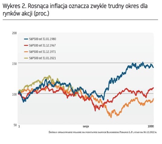 Banki centralne najpierw wyhamowały tempo zacieśnienia polityki pieniężnej, a na początku 2023 r. ostatecznie je zakończą. Ich dylematy nie będą jednak dużo mniejsze. Gdyby historia była wierną przewodniczką, to kilka (od sześciu do dziewięciu) miesięcy po zakończeniu cyklu podwyżek stóp powinien nastąpić cykl ich obniżek. Reakcja na inflację powinna ustąpić reakcji na recesję. Jedynym, co tym razem może powstrzymać banki centralne przed podążaniem taką samą ścieżką, jest inflacja utrzymująca się na podwyższonych poziomach. Ekonomiści będą zatem z jednej strony szukać oznak recesji, z drugiej zaś uważnie obserwować inflację i jej lepkość. O ile bowiem w bieżących danych widać już punkt zwrotny (poprzeczka, by inflacja cały czas przyspieszała, jest zawieszona nierealistycznie wysoko), o tyle nie ma w nich niczego, co naszym zdaniem zapowiadałoby nieodległy powrót inflacji do celu. Jeśli ten stan rzeczy się nie zmieni, przestrzeń do cięć stóp procentowych będzie mniejsza, niż wskazywałaby na to historia. Reasumując, jeśli chodzi o ścieżki inflacji, rok 2023 będzie lustrzanym odbiciem kierunków zmian z roku bieżącego (zamiast wzrostów – spadki), ale tutaj pewność co do rozwoju wydarzeń się kończy.