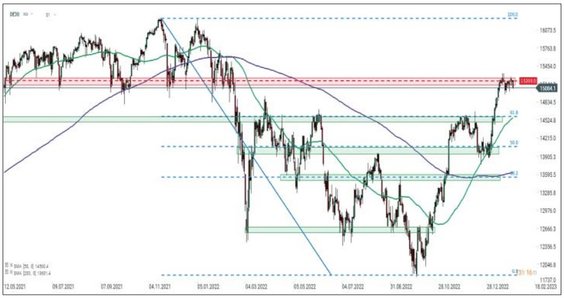 – Patrząc na niemiecki indeks DAX na interwale dziennym, widzimy, że wskaźnik dotarł do strefy oporu w okolicach 15 200 pkt. Ruch tam się zatrzymał i od prawie trzech tygodni indeks porusza się w konsolidacji. Jeśli EBC nasili swoje jastrzębie podejście i zasygnalizuje, że ostatnie zmiany w inflacji nie zmieniają krótkoterminowych perspektyw dla polityki monetarnej, indeksy mogą odczuć pewną presję spadkową – uważają przedstawiciele XTB. DAX ma za sobą naprawdę udany początek roku. W styczniu jest 8 proc. na plusie.