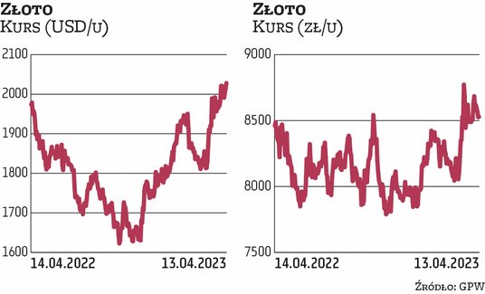 Jak tłumaczy, otoczenie makroekonomiczne jest wręcz idealne dla złota. – Brakuje tylko wiary po stronie inwestorów. Amerykańska Rezerwa Federalna już zapowiedziała, że obecny cykl podwyżek stóp zbliża się do końca, co przede wszystkim zawdzięczamy spadającej inflacji i problemom sektora bankowego. Sprzyja to osłabieniu dolara, co zawsze było korzystne dla notowań złotego kruszcu – zauważa Ogrodowicz. Według niego ustanowienie nowych historycznych szczytów powinno być bodźcem dla hossy złota.