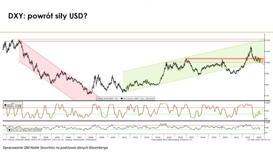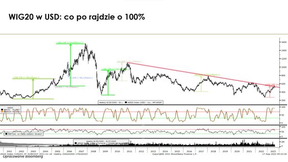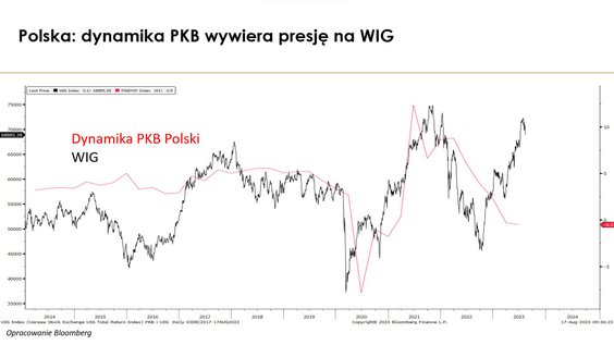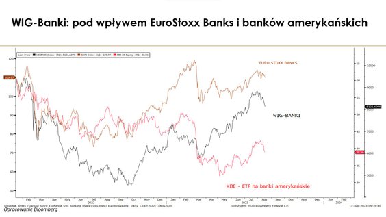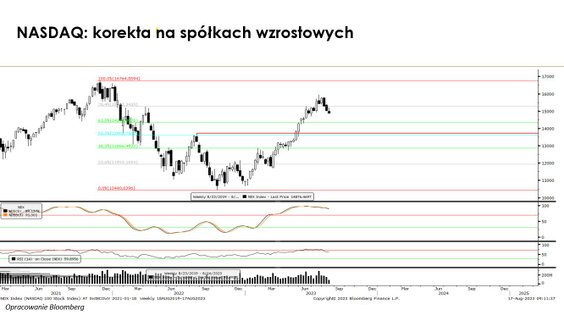 Ta grupa firm była sporym zaskoczeniem jeśli chodzi o skalę wzrostu w tym roku. Największe spółki technologiczne zyskały nawet po ponad 100 proc., a Nasdaq blisko 50 proc. Ostatnio technologiczni giganci zaczynają łapać zadyszkę. Z jednej strony zwyżki z czerwca i lipca tłumaczone są dociskaniem krótkich pozycji, a z drugiej strony mamy lipcową podwyżkę stóp procentowych i tzw. minutes Fedu, które poznaliśmy w środę. Fed nie wyklucza, że dalej będzie potrzebne zaciskanie polityki monetarnej. Do tego, co może jest kluczowe, trochę zmienia się natura rynku w tym sensie, że pozytywne dane rynek ignoruje, a staje się bardziej wrażliwy na negatywne dane, co pokazał informacja o możliwym obniżeniu ratingu banków amerykańskich. Kolejna podwyżka stóp procentowych przez Fed byłaby wymagająca dla spółek wzrostowych. Na ten moment mamy 5-proc. przecenę, ale patrząc na skalę wzrostu od grudnia, to ten spadek zniósł relatywnie niewiele zwyżki. Wydaje się, że kierunek będzie zależał od tego, jak inwestorzy zinterpretują minutes Fedu i jakie będą przewidywania co do jego polityki w kolejnych miesiącach.