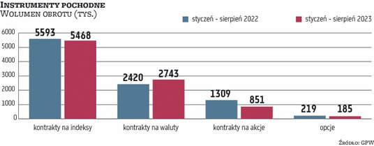 Wolumeny obrotu na rynku terminowym warszawskiej giełdy w tym roku wpisują się dobrze w to, co dzieje się na rynku akcji. Tak jak na rynku kasowym, tak i w przypadku pochodnych, mamy niższą aktywność inwestorów niż w 2022 r. Nie dotyczy to jednak wszystkich instrumentów. Pozytywnie wyróżniają się futures na waluty, które w ostatnich dniach cieszą się jeszcze większym zainteresowaniem inwestorów.