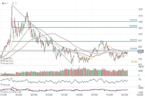 Poniedziałek upływał jednak pod znakiem stabilizacji, co wcale nie było takie oczywiste. Jak się jednak okazało, większego wpływu na rynek nie miała informacja o tym, że OPEC+ przedłużył obowiązujące cięcie produkcji (o 2,2 mln baryłek dziennie) do końca II kwartału 2024 r. Eksperci podkreślają, że rynek już wcześniej mógł zdyskontować przedłużenie cięć.