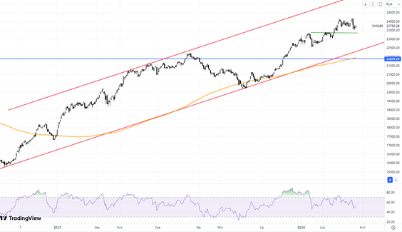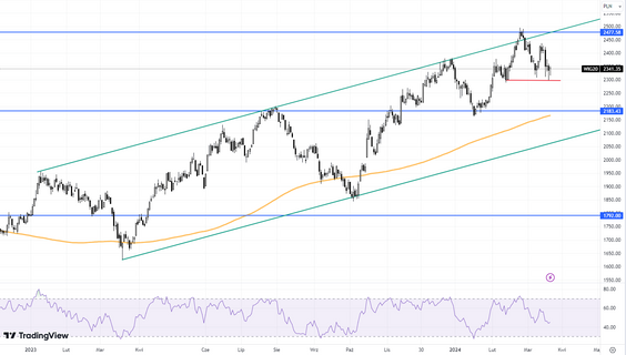 WIG20 zaliczył korektę, ale obronił poziom 2300 pkt. Ma szansę powrotu do górnego ograniczenia kanału wzrostowego, w którym się porusza?