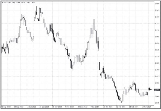 – Firma Baker Hughes w swoim cotygodniowym raporcie w piątek podała, że liczba funkcjonujących wiertni gazu ziemnego w USA spadła o 4, do 112, czyli do najniższego poziomu od stycznia 2022 roku. Utrzymująca się presja na ceny gazu ziemnego w ostatnim czasie wynika z cieplejszej od oczekiwań zimy, mniejszej aktywności zakładów LNG i większej od oczekiwań produkcji gazu. Nie bez znaczenia jest także konkurencja ze strony odnawialnych źródeł energii, takich jak energia wiatrowa i słoneczna. W rezultacie na rynku amerykańskim obecnie występuje spora nadpodaż gazu ziemnego - podkreśla Sierakowska.