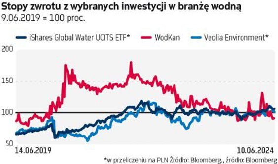 Jak dodaje, jednocześnie rosną koszty produkcji elementów infrastruktury wodnej, np. urządzeń sanitarnych, interfejsów, co wynika m.in. z rosnących kosztów pracy, energii i surowców. Zdaniem ekonomisty szerokie możliwości inwestowania w spółki związane z branżą wodną dają fundusze ETF. W ich akcje można też inwestować bezpośrednio, jednak poza USA możliwości bywają mocno ograniczone, a ryzyko jest spore. Przeglądu zagranicznych spółek z tego obszaru wymaga wiedzy o tych rynkach i ich otoczeniu (m.in. o uwarunkowaniach lokalnych, relacjach z interesariuszami czy regulacjach prawnych).