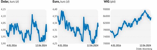Inflacja konsumencka w ubiegłym miesiącu w USA okazała się być niższa od rynkowych prognoz i w ujęciu rocznym urosła 3,3 proc. wobec spodziewanych 3,4 proc. Odczyt ten został przez rynki przyjęty bardzo pozytywnie. Wyraźną reakcję na dane widać było m.in. w notowaniach walut. W górę poszybował przede wszystkim eurodolar – po południu EUR/USD zwyżkował nawet o 1 proc., do 1,04 euro za dolara. Euro zdołało w ten sposób odrobić straty z pierwszych dwóch dni tego tygodnia. Przypomnijmy, że w poniedziałek notowania wspólnej waluty mocno traciły w związku z wynikami eurowyborów i rozwiązaniem francuskiego parlamentu przez tamtejszego prezydenta. Euro miało też ciężki piątek, gdy pojawiły się dane z amerykańskiego rynku pracy. Do utraconych przez EUR/USD wówczas poziomów w środę jednak jeszcze nieco brakowało.