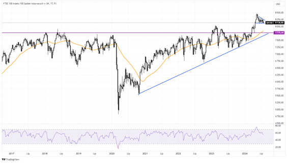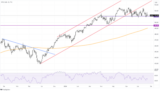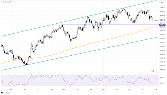 WIG20, spadając we wtorek o 1,5 proc, był najgorszym indeksem w Europie. Szybko zbliża się do ważnego wsparcia na poziomie około 2400–2380 pkt. Jeżeli go obroni, to zostanie w trendzie wzrostowym?