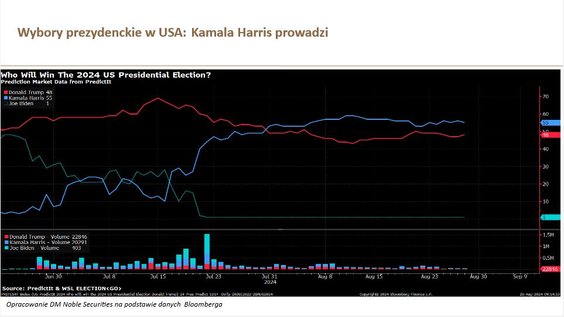 Od kilku tygodni w sondażach prowadzi Kamala Harris i rynki są na nią przygotowane. Chociaż kiedyś miała wygrać Clinton, wygrał Trump, a i tak były zwyżki na giełdzie. Inwestorzy co mają zrobić, to zrobią. Długoterminowo będzie decydować polityka monetarna i kondycja gospodarki. W cenach jest dużo optymizmu, trochę schłodzonego. Wyniki i perspektywy wyników Nvidii mogą być kierunkowskazem, w którą stronę mogą podążać w najbliższych tygodniach indeksy. U nas w tle jest spodziewane IPO Żabki. To ma znaczenie dla naszego rynku, bo inwestorzy mogą mieć niewykorzystaną płynność, czekając na ten debiut.