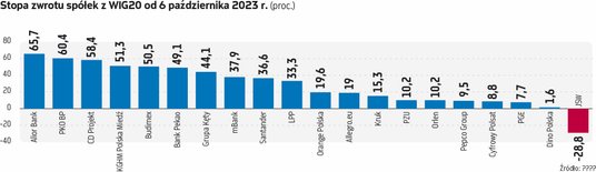 Mija właśnie rok, od kiedy krajowe indeksy ruszyły wyraźnie do góry, m.in. na fali optymizmu inwestorów związanej z oczekiwanymi zmianami na scenie politycznej. WIG20 na początku października ubiegłego roku był notowany poniżej 1900 pkt, ale dość szybko wzbił się ponad 2000 pkt. W samym tylko październiku 2023 r. indeks dużych spółek urósł o ponad 12 proc., a w kolejnych dwóch miesiącach odpowiednio o 3 oraz 5,8 proc. Jesienne zwyżki przybrały nazwę wyborczej hossy, a inwestorzy mieli nadzieję m.in. na poprawę ładu korporacyjnego w spółkach z udziałem Skarbu Państwa. Bankom, czyli kluczowej dla zachowania WIG20 grupie firm, sprzyjało spodziewane utrzymanie stóp procentowych na wyższych poziomach. Co ciekawe, pojawiły się też większe napływy do funduszy akcji polskich.