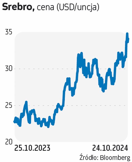 Wspomniany przez niego poziom 2800 USD za uncję złota może się wydawać ostrożny, ale i tak jest wyższy niż prognozy większości analityków. Projekcje dla ceny kruszcu na koniec 2024 r., zebrane przez agencję Bloomberga, są bowiem dosyć konserwatywne. Wahają się od 2200 USD do 2750 USD za uncję. Prognozy na koniec pierwszego kwartału 2025 r. są natomiast w przedziale od 2000 USD do 2853 USD za uncję, a na koniec czerwca 2025 r. wahają się od 2000 USD do 3000 USD za uncję (najbardziej „byczą” prognozę przygotowali analitycy BofA Merrill Lynch). 3000 USD w perspektywie nieco ponad ośmiu miesięcy? Od tego poziomu dzieliło złoto w tym tygodniu mniej niż 10 proc. Ten poziom może być więc całkiem realny do osiągnięcia. Zwłaszcza że żyjemy w niespokojnych czasach, a kruszce przyciągają inwestorów szukających zabezpieczenia dla swoich majątków.