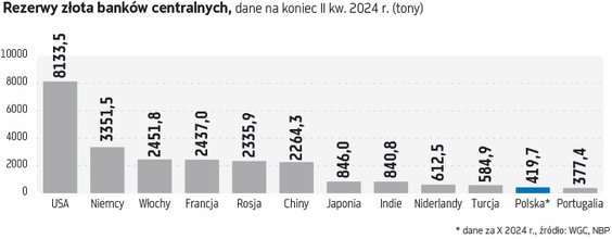 Polska dysponuje obecnie większymi zasobami złota, niż na koniec czerwca miały m.in.: Wielka Brytania (310,29 ton), Hiszpania (281,58 ton) czy Szwecja (125,72 tony). Jeszcze w 2017 r. w rękach NBP znajdowały się tylko 103 tony kruszcu, czyli nieco mniej, niż obecnie posiada Rumunia.