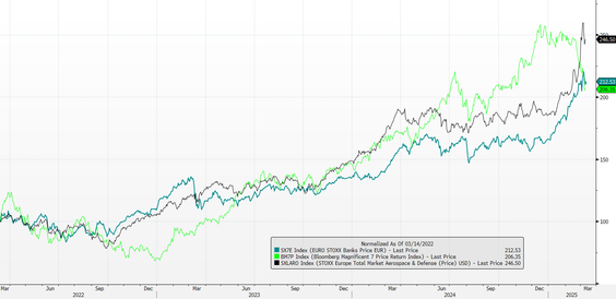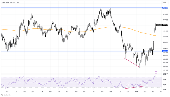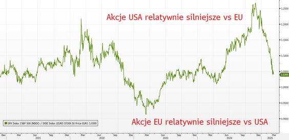 Z jednej strony widzimy dążenie do ograniczenia wydatków fiskalnych w USA. A one były jednym z głównych czynników w ostatnich latach, które powodowały, że gospodarka amerykańska pozytywnie wyglądała na tle innych regionów. Z drugiej strony presja geopolityczna spowodowała, że Europa zaczęła się budzić, zwiększa samodzielność, większa wydatki i ekspansję fiskalną. To widać w notowaniach europejskich aktywów.