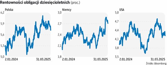 Europejskie rynki obligacji w ostatnich tygodniach zachowywały się nieco inaczej od amerykańskiego. Po ogłoszeniu przez niemiecki rząd planów wydatków zbrojeniowych na ogromną skalę doszło do wyraźnej przeceny tamtejszych papierów skarbowych. Oprocentowanie dziesięcioletnich bundów w pierwszej połowie marca skoczyło nawet do 2,938 proc. w porównaniu z zamknięciem zeszłego roku na 2,362 proc. Ostatnio jednak obserwujemy na tym rynku umocnienie i choć do tegorocznych dołków dochodowości jeszcze daleko, to w poniedziałek wskaźnik ten spadał do 2,7 proc.