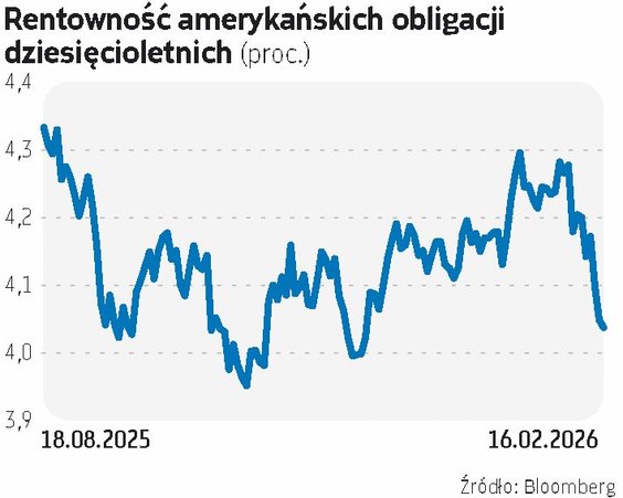 Rentowności polskich papierów dziesięcioletnich w ostatnich dniach spadły pod poziom 5 proc. i są najniżej od niemal czterech lat. Tylko w lutym wskaźnik ten osunął się o 15 pkt baz. Co do rynku akcji, możemy mówić jedynie o konsolidacji indeksów w pobliżu niedawno osiągniętych szczytów, czy wręcz rekordów notowań. W porównaniu z innymi rynkami Polska nie jest jednak wyjątkiem. Jeszcze dynamiczniej kurczy się w tym miesiącu oprocentowanie amerykańskich papierów dziesięcioletnich, spadające w ostatnich dniach pod 4,05 proc., aczkolwiek w tym przypadku jak na razie możemy tylko mówić o cofnięciu się wspomnianego wskaźnika do pułapu z końca listopada zeszłego roku. W kwietniu ubiegłego roku był on mniejszy niż 3,9 proc.
