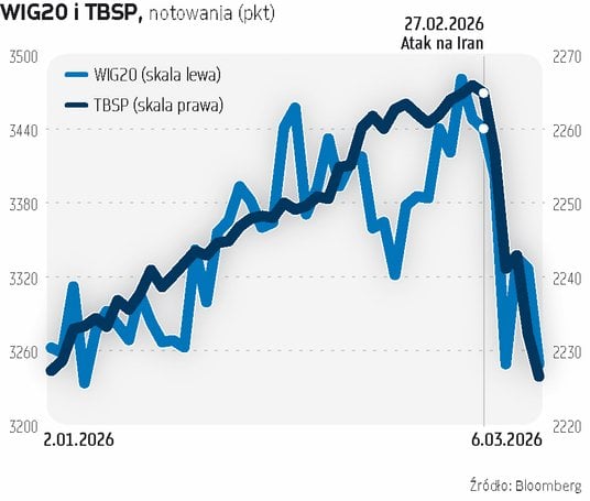 Inwestorzy wycofują się przede wszystkim z najbardziej ryzykownych aktywów, czyli akcji i walut rynków wschodzących, ale też obligacji skarbowych. WIG20 kończył tydzień 5,5 proc. poniżej zamknięcia lutego, aczkolwiek wynik ten wcale nie stawiał go w najgorszym świetle wśród innych giełd europejskich, w tym krajów rozwiniętych. Niemiecki DAX czy francuski CAC 40 wypadają w tym samym okresie jeszcze słabiej. Ale coraz gorsze nastroje obejmują również Stany Zjednoczone, które i tak od początku roku pozostawały w tyle.